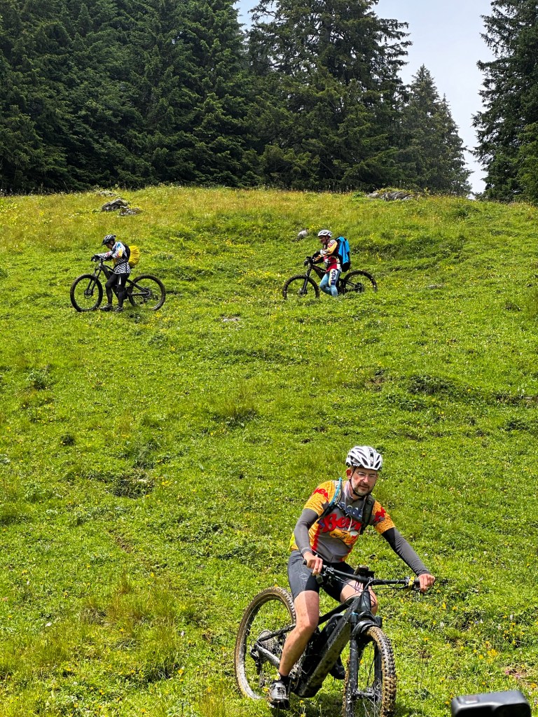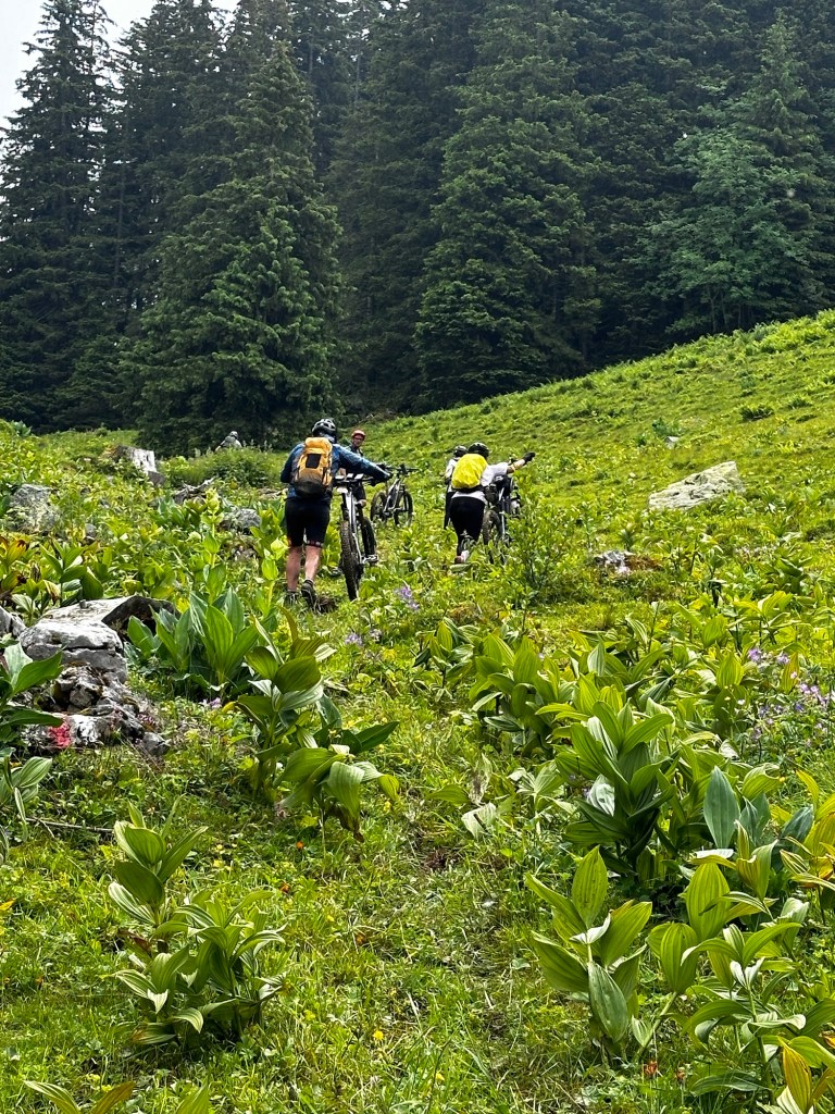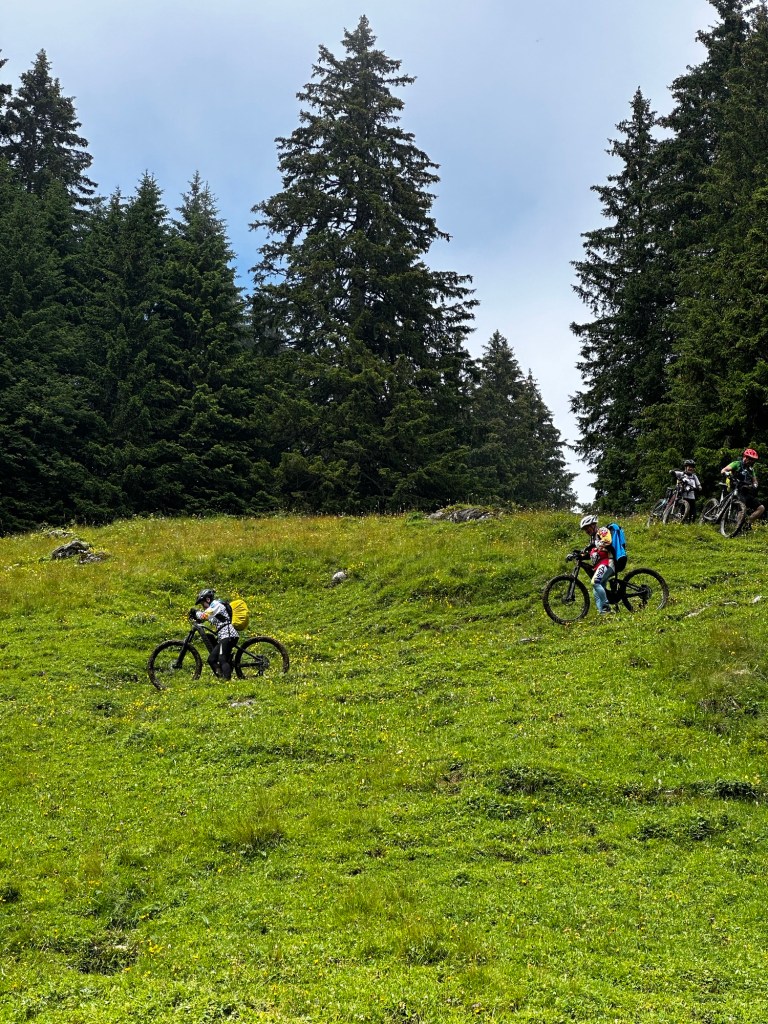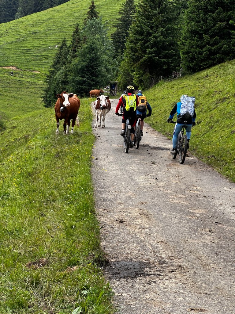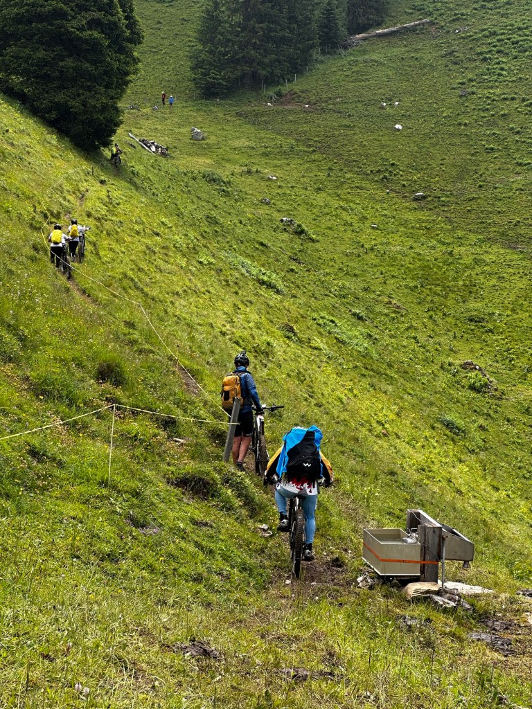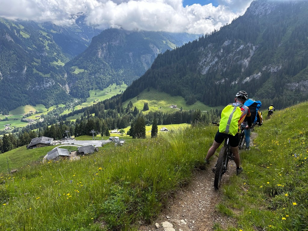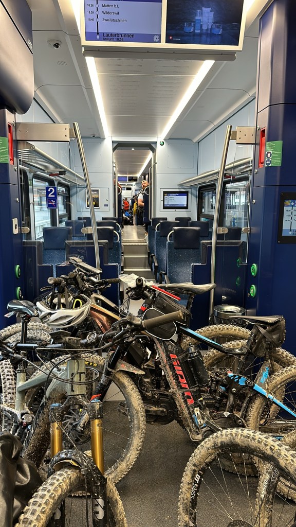 Entre-temps nos éclaireurs nous ont ORDONNÉS de ne pas suivre la trace TROP DURE !!!! Nous décidons de prendre le train à Interkaken pour écourter la trace
