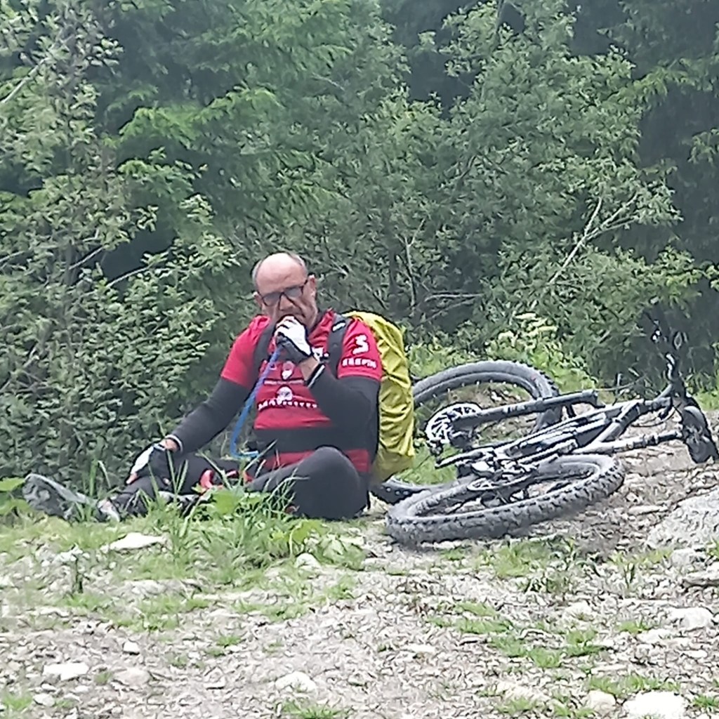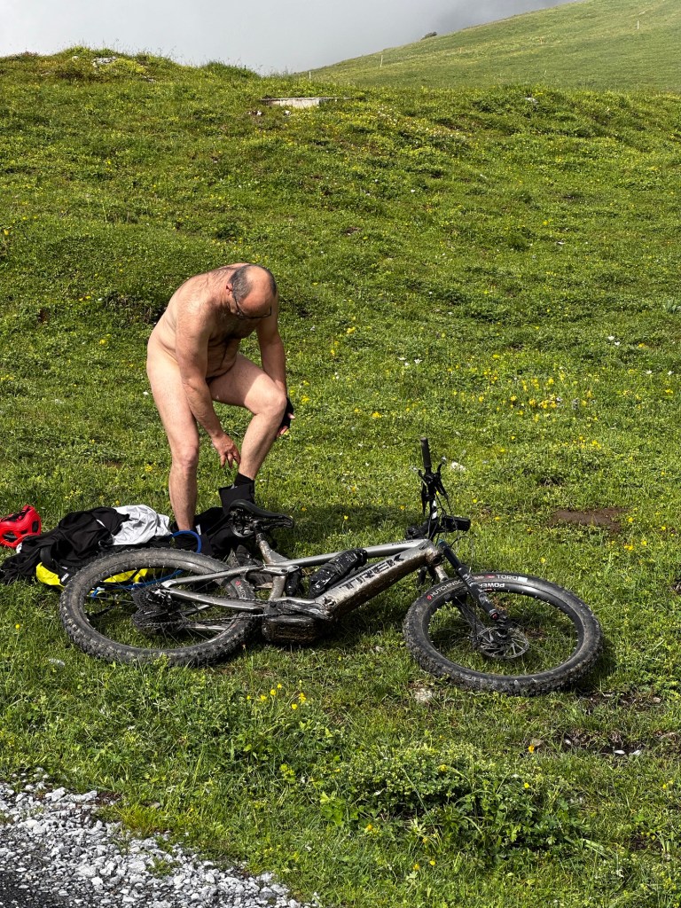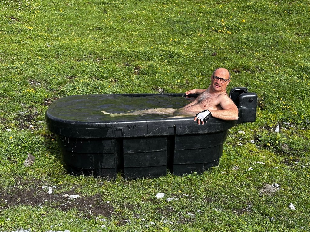 Surprise au milieu du parcours Rémi trouve une « baignoire « comme pendant le tour des Dolomites en 2023, Rémi ne peux s’empêcher de prendre le mythique bain des montagnes