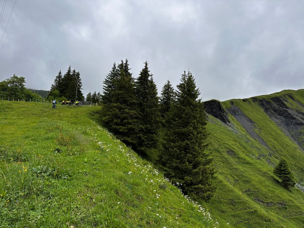 La montée commence 3 groupes se distinguent de nouveau: Roland tout seul, Rémi tout seul par la route, et le reste sur la trace à Lilian pour faire cool!!!